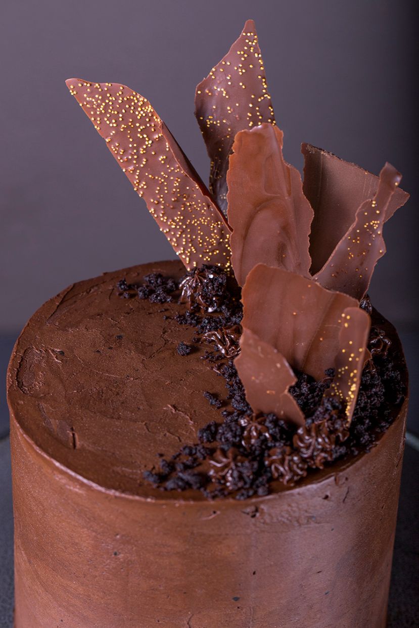 One layered chocolate cake, made with almond flour and covered in a dark chocolate ganache. *Contains almond flour*